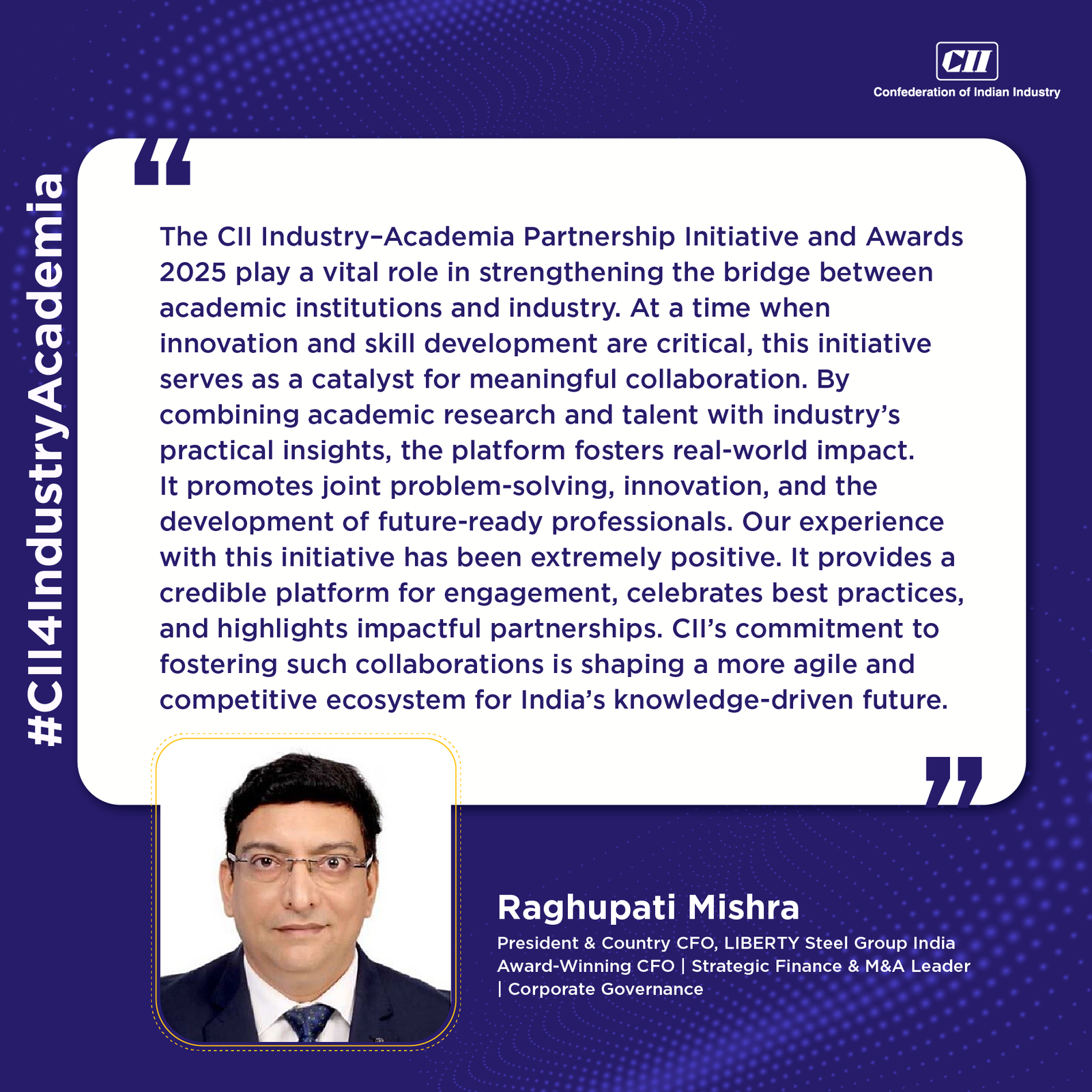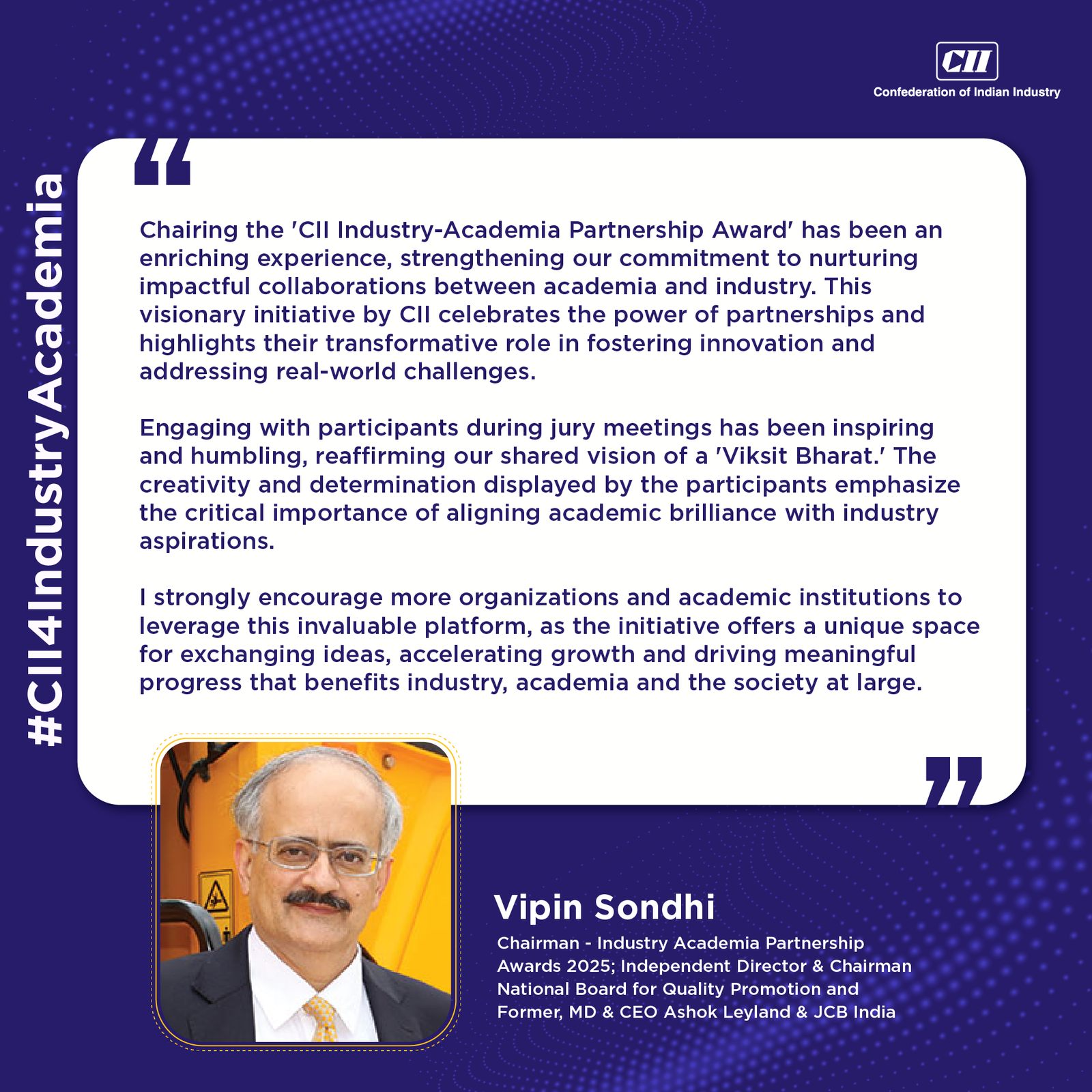 “The agriculture sector is vital to India's goals for "Viksit Bharat" by 2047 -driving economic growth, improving sustainability, and lifting millions out of low-income levels. The resurgence of Agriculture needs an improved focus on sciences - basic, applied, and data -as well as accelerating collaborative innovation by Industry and Agri Universities.”