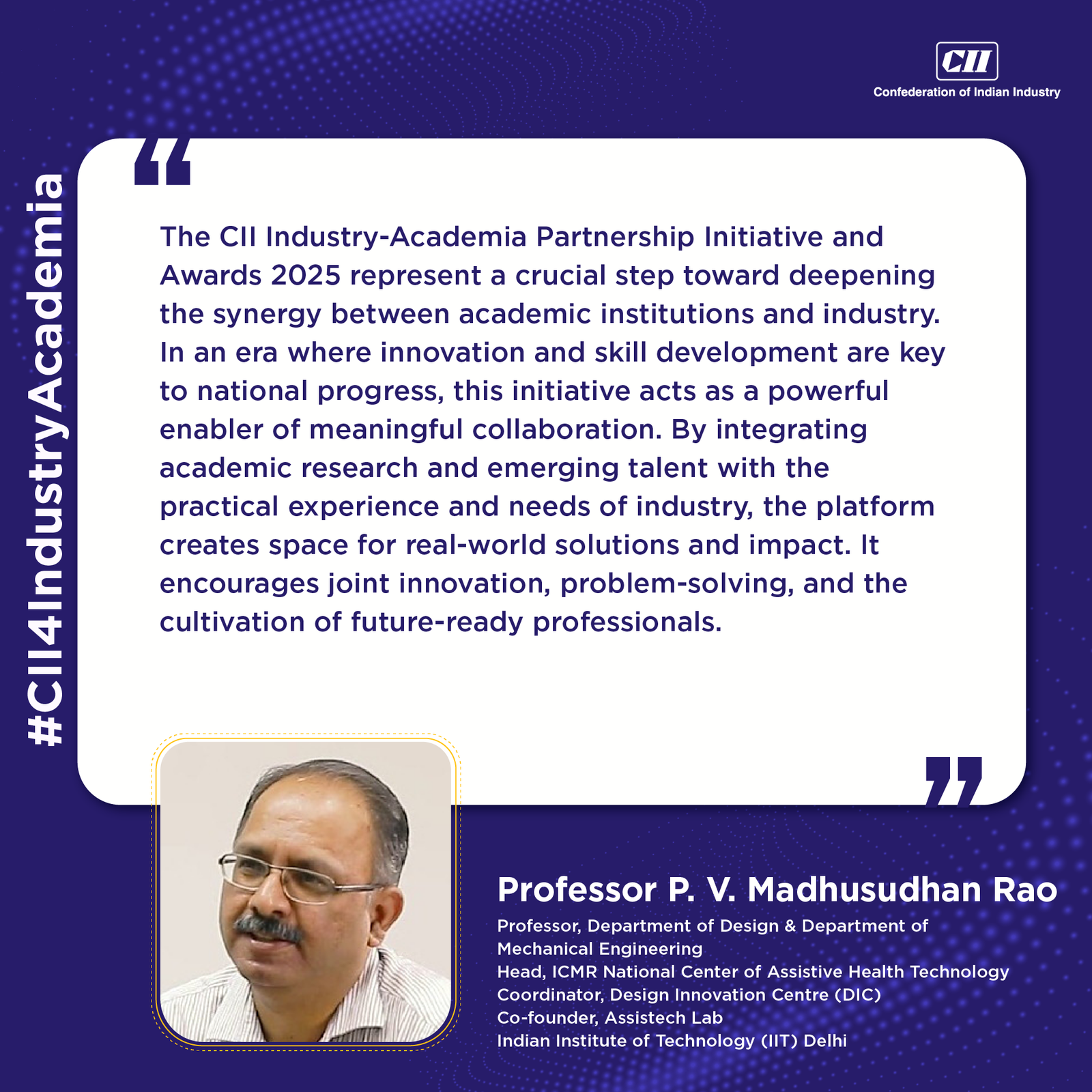 “India stands at a critical juncture where it can make a meaningful impact on affordability and accessibility of biotherapeutic products, not only for Indians but for the world. To make this happen, we need to be an innovator and not just a follower with respect to biomanufacturing technology. Academia-Industry collaborations are the need of the day”